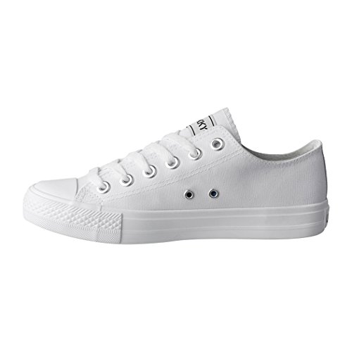 Was sind Ihre Vorlieben? Ein bunter Schuh, der auffällt oder doch eher schlichte und klassische Sneaker. Von Gelb bis Pink über Grau bis Schwarz- für jeden Geschmack ist etwas dabei. Dieser sportliche Freizeitschuh ist für jeden Anlass eine gute Investition und sollte in keiner Schuhsammlung fehlen. Das Erkennungszeichen- die weiße Sohle mit dem charakteristischen Streifen sieht nicht nur super aus, sondern bietet auch einen hohen Tragekomfort sowie einen sicheren Gang. Das Obermaterial besteht aus Textil und ist dadurch pflegeleicht und trotzt jeder Wetterlage. Die Schnürung der Low Top Sneaker verleiht dem Träger einen lässigen und zugleich eleganten Look. Diesem trendigen Schuh sind keine Grenzen gesetzt und das Beste an diesem Schuh: Er ist in den trendigen Farben Rot, Schwarz, Grün, Gelb, Weiß, Blau, Pink, Khaki, Braun, Bordeaux, Army Grün, Hellgrün, Hellblau, Hellgrau, Dunkelblau und in den Größen 36-46 erhältlich, optional auch komplett einfarbig in Schwarz, Weiß.