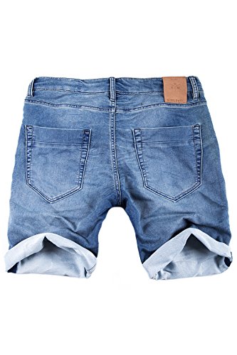 Farbe – Blau – Moderne Sublevel Herren Jogg Jeans Shorts – Tunnelzug am Bund im Kontrastlook – Umgekrempelter Beinsaum – Angenehmes elastisches Material für den perfekten Sitzt – Verschluss mit Reißverschluss – Material: 66% Baumwolle, 33% Polyester, 1% Elasthan
