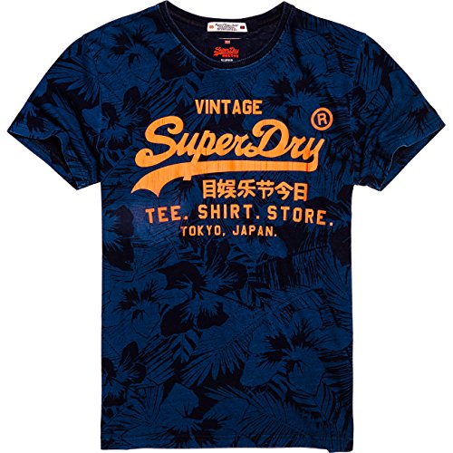 Superdry GemustertesT-Shirt mit dem rissigen Vintage Logo-Print auf der Vorderseite; Rundhalsausschnitt mit Rippbündchen; Material 100% Baumwolle.